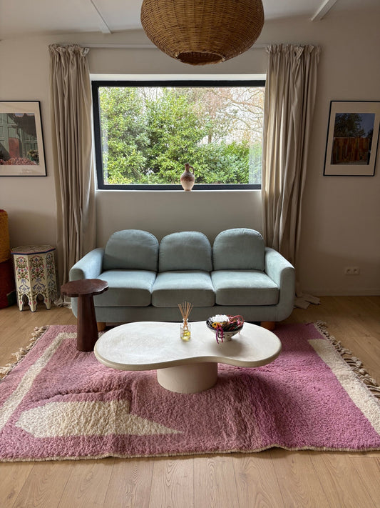 Because I carefully select my rugs and depend on each artisan's production schedule and seasonality (for example, we work much more slowly during periods of intense heat and also during Ramadan), the collections don't arrive on a tight schedule. Some collections take longer to arrive than others, also depending on my carrier's departures from Morocco. Patience goes hand in hand with the richness of Moroccan craftsmanship.