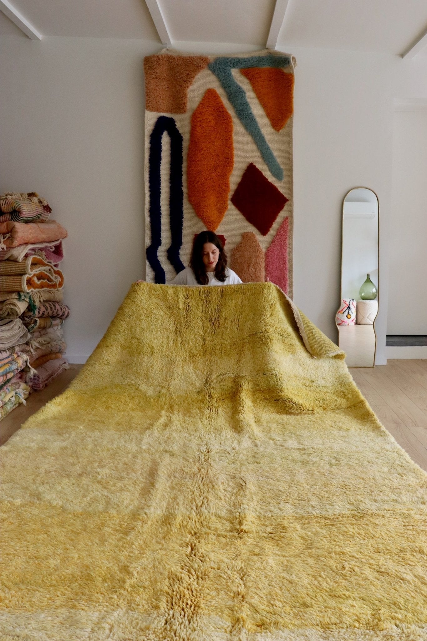 Handwoven Yellow Rugs from Morocco Discover our collection of yellow Moroccan Berber...