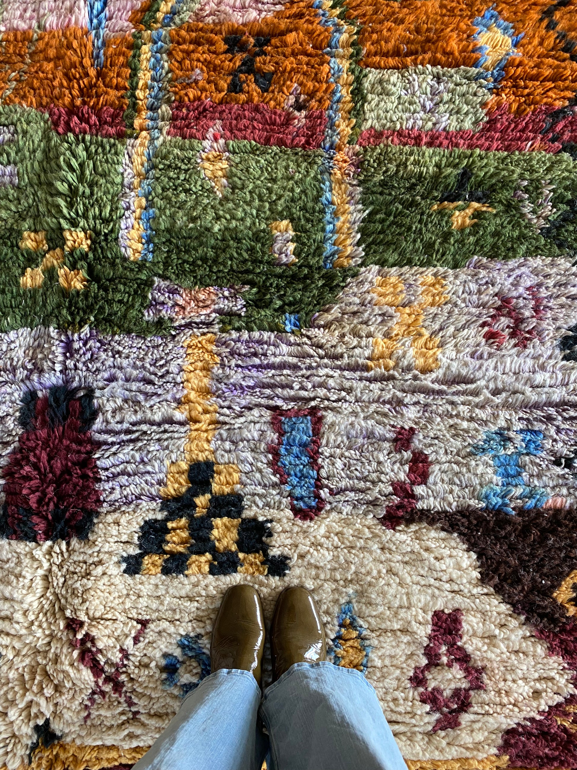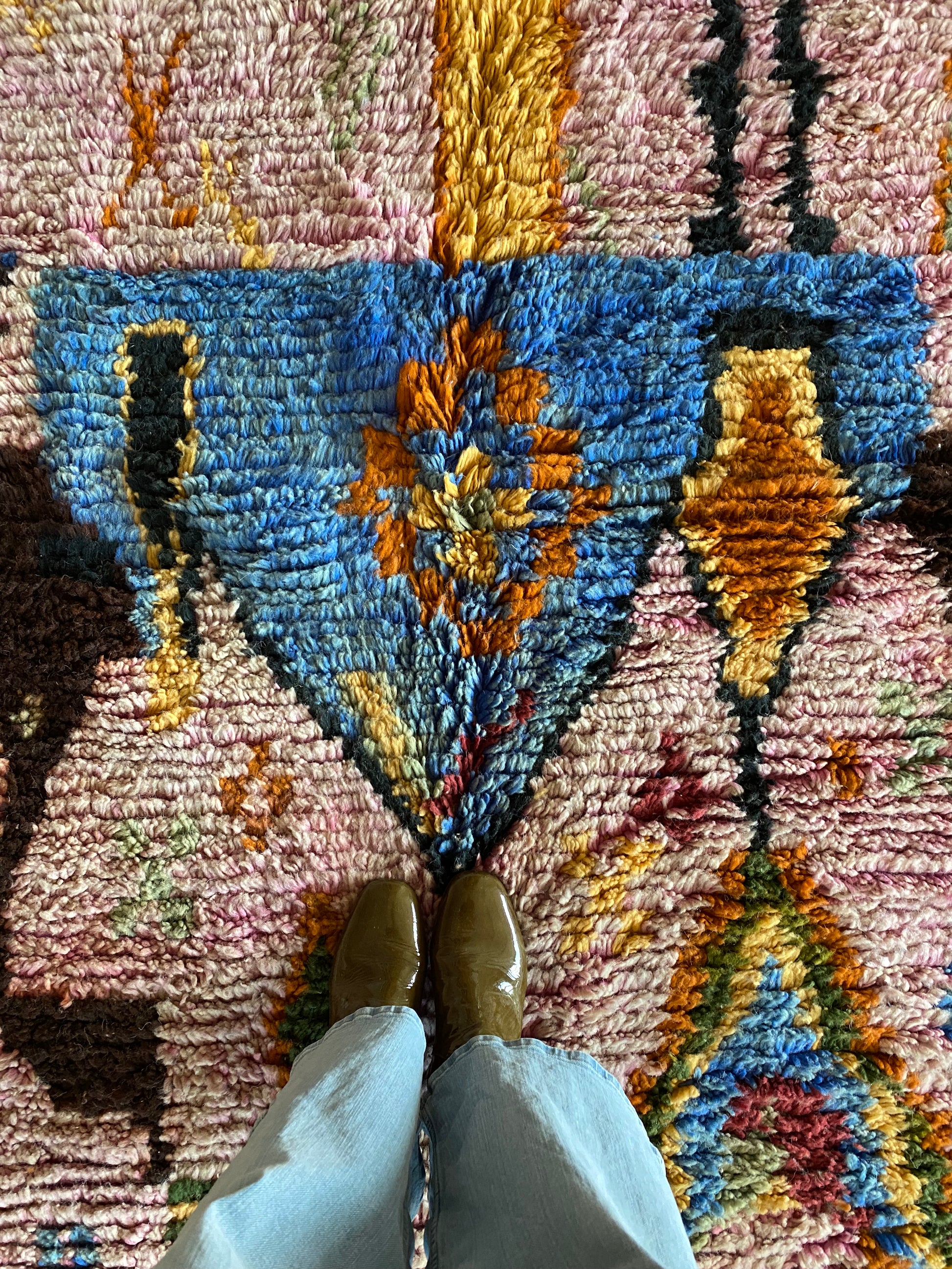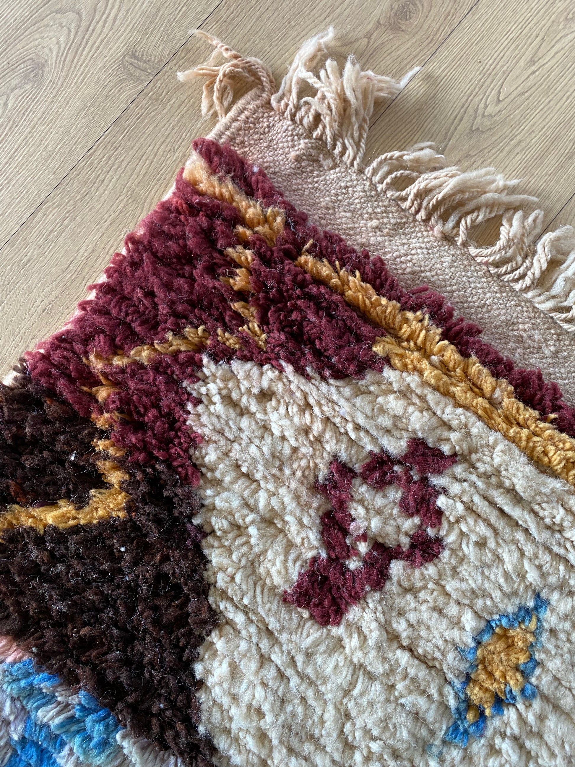 This rug is handwoven from natural sheep wool by Berber artisans in Boujad, Morocco. Each rug is a unique piece, carefully crafted with traditional techniques and made to last.