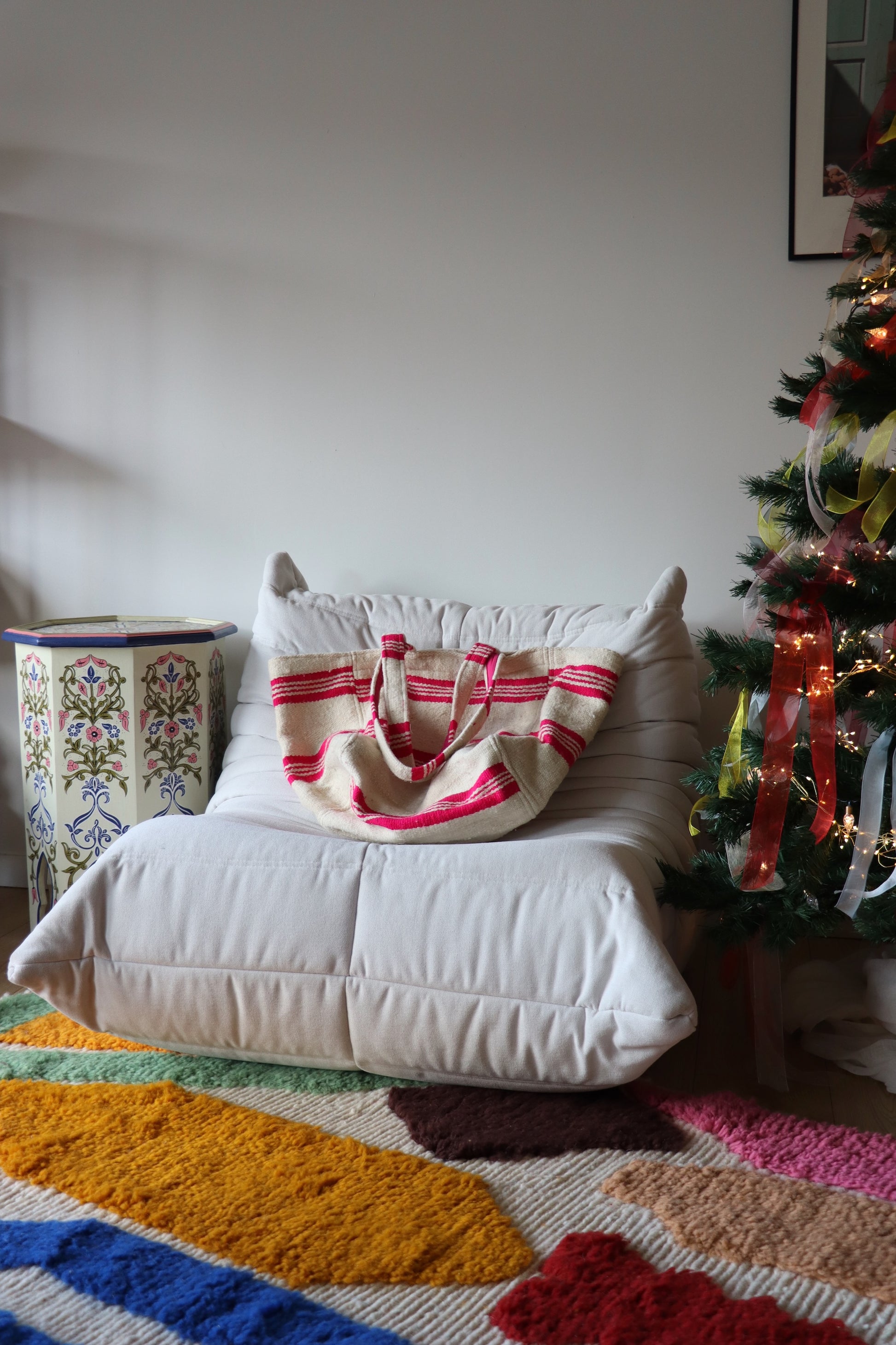 Handmade tote bag made with Moroccan wool blankets by our textile artisan in Marrakech