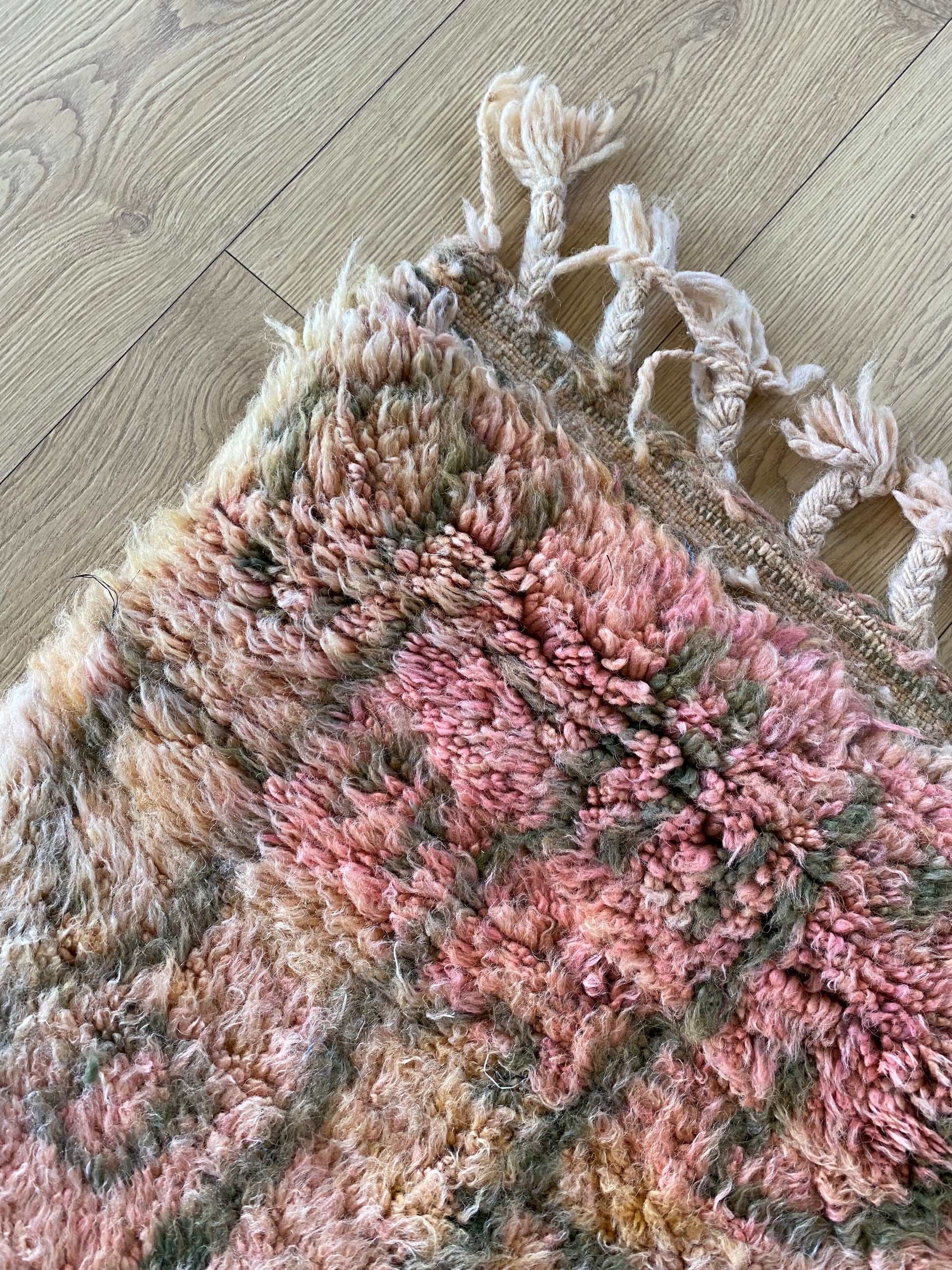 This rug is handwoven from natural sheep wool by Berber artisans in Khemisset, Morocco. Each rug is a unique piece, carefully crafted with traditional techniques and made to last.