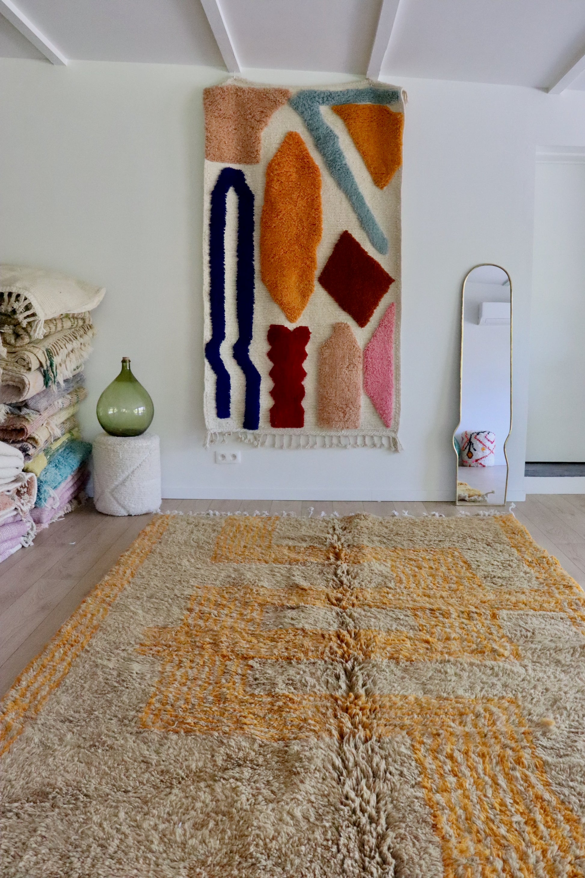 Handmade by Berber weavers in the mountains near Boujad, Morocco, this rug is a truly unique piece, made with wool. With its colorful patterns, this rug will bring a bright and authentic look to your interior.