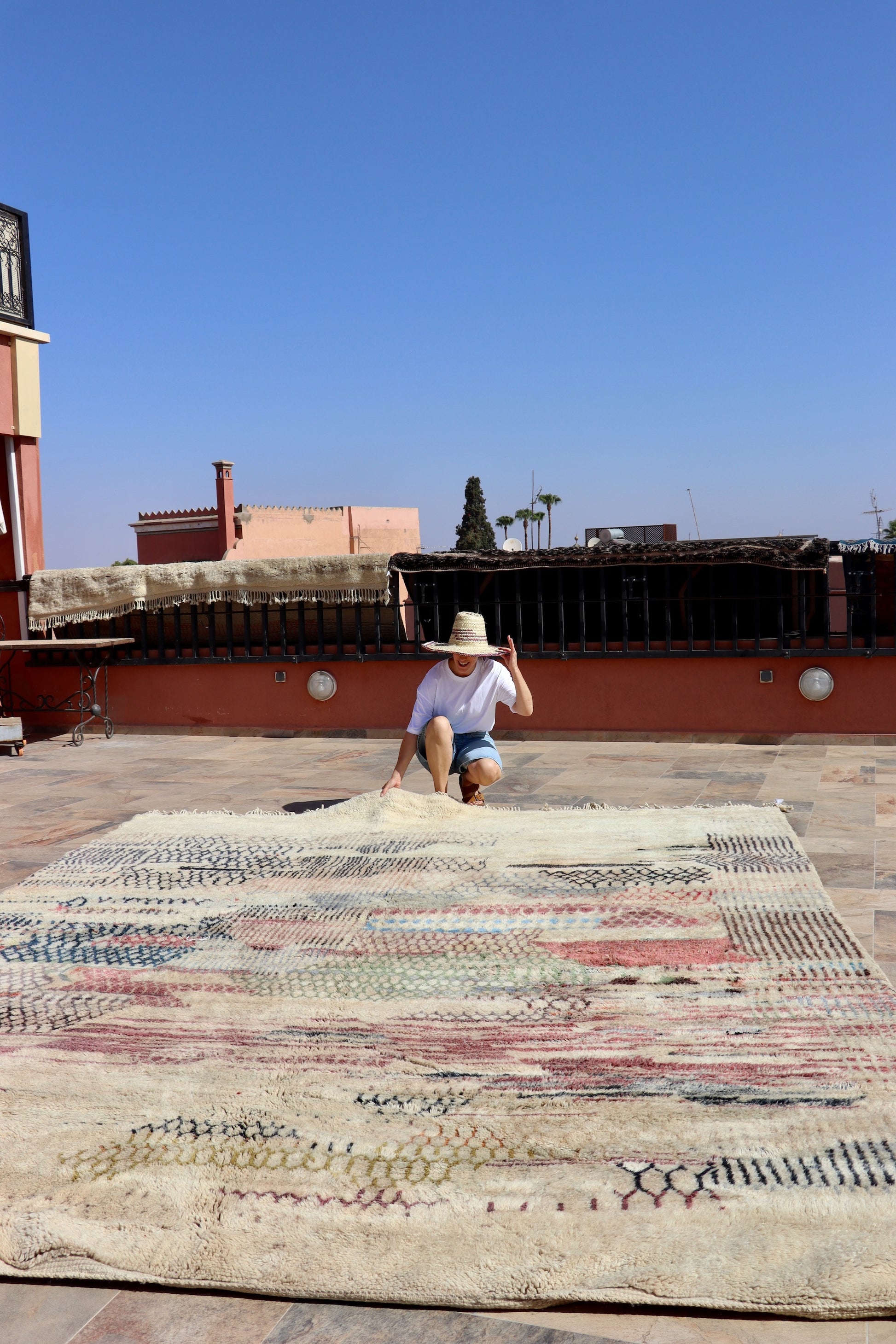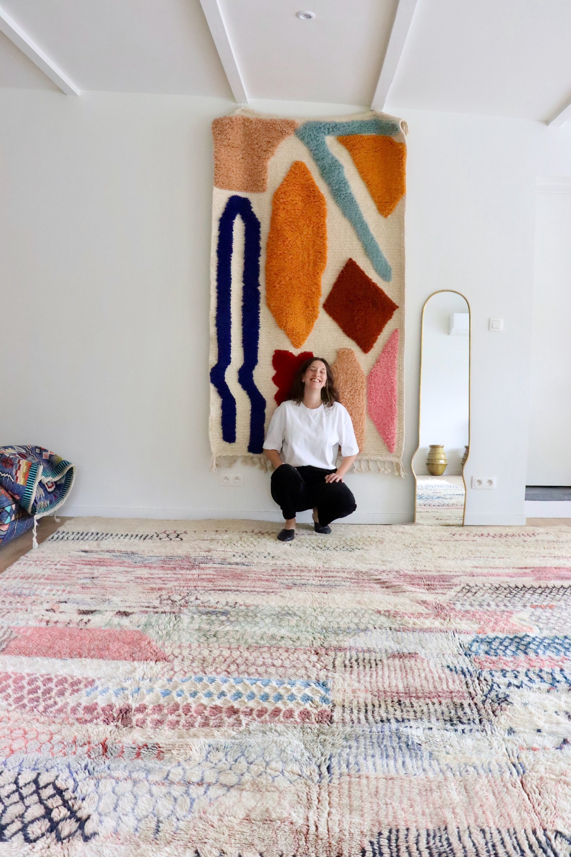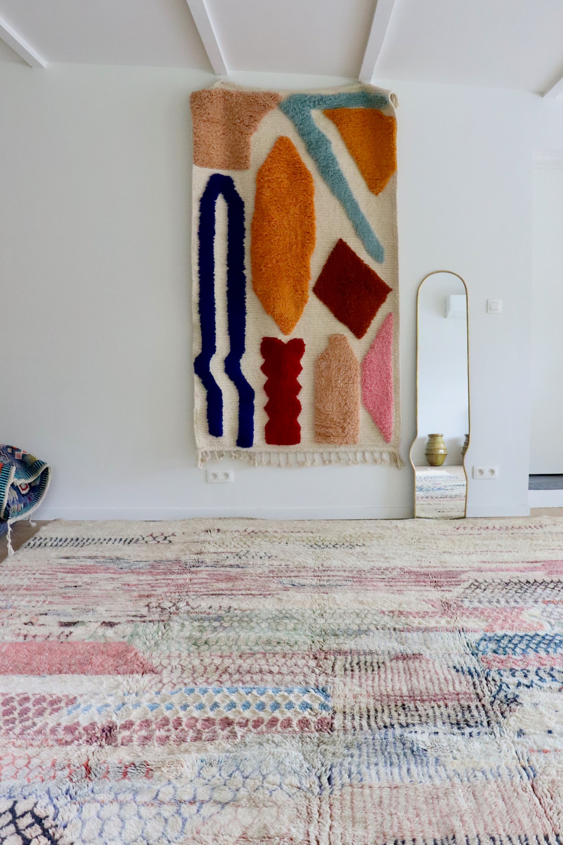 Handmade by Berber weavers in Khenifra, Morocco, this Mrirt rug is an exceptional piece, made with sheep wool. With its asymmetric patterns, very soft texture and medium-pile countless knots, this rug will bring a chic and authentic look to your interior.
