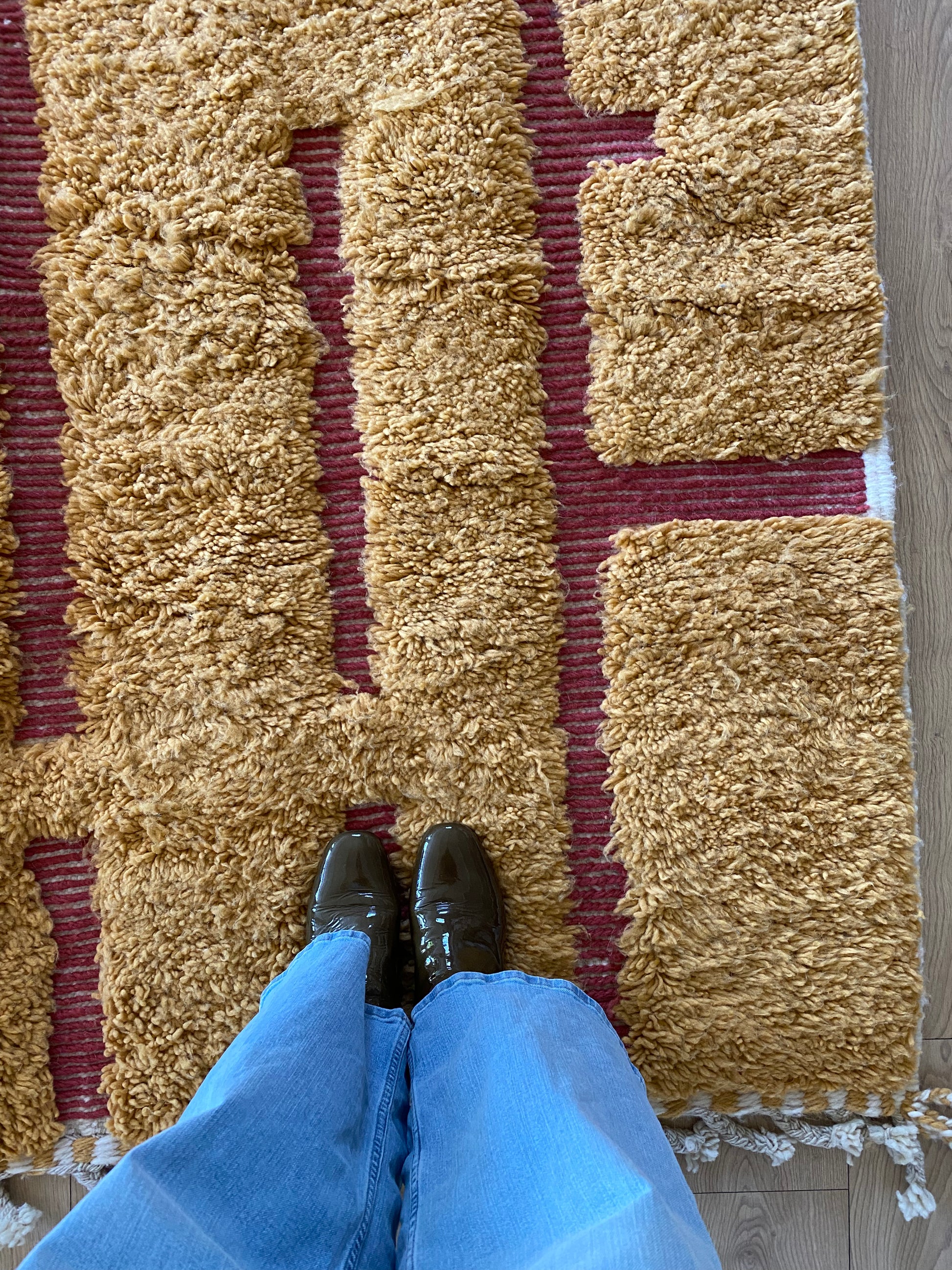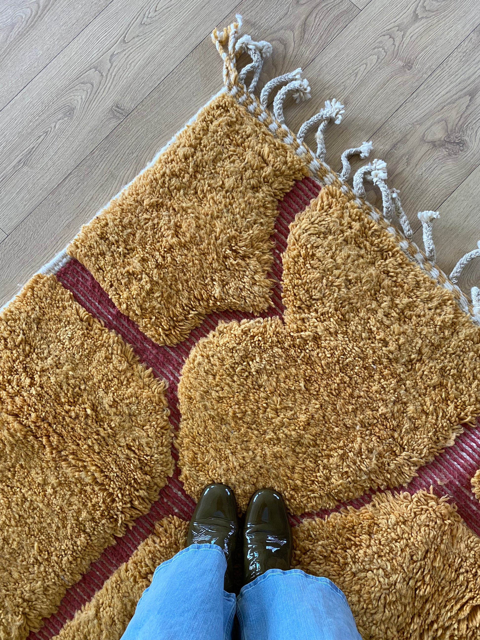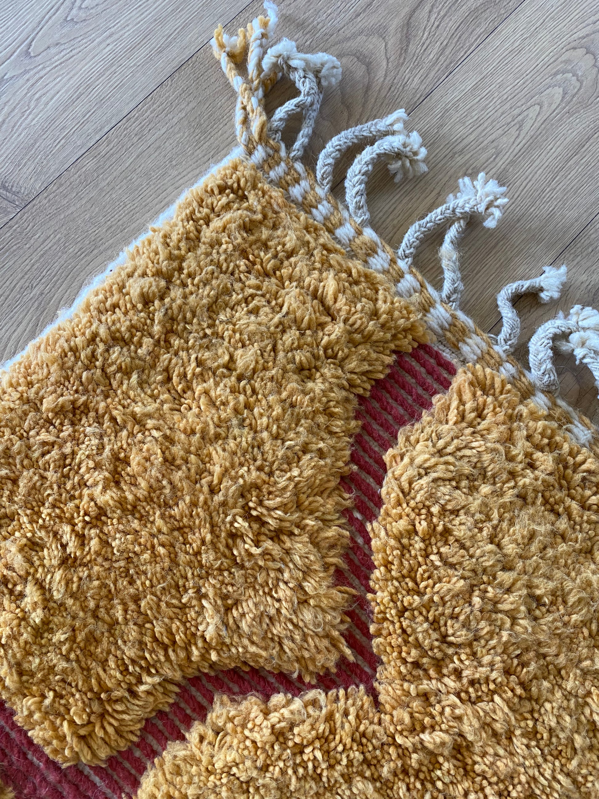 This rug is handwoven from natural sheep wool by Berber artisans in Khemisset, Morocco. Each rug is a unique piece, carefully crafted with traditional techniques and made to last.