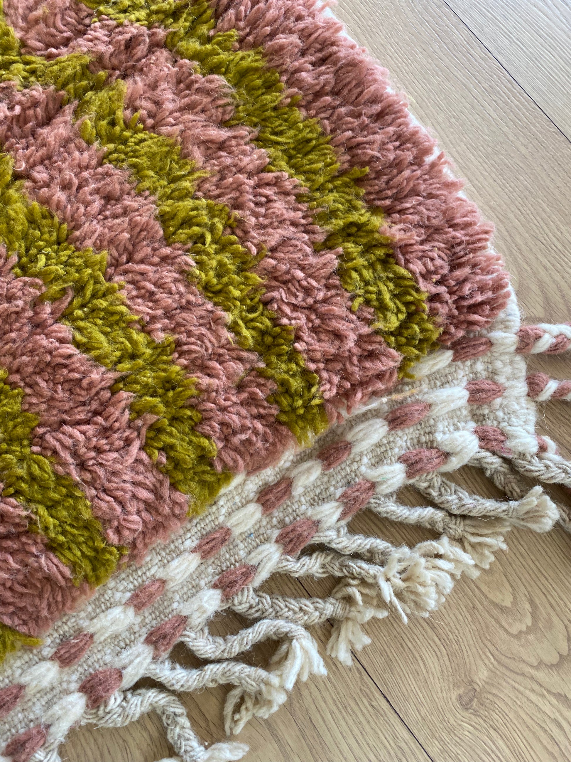 Handmade by Berber weavers in Khemisset, Morocco, this rug is a truly unique piece, made with wool. With its colorful patterns, this rug will bring a bright and authentic look to your interior.
