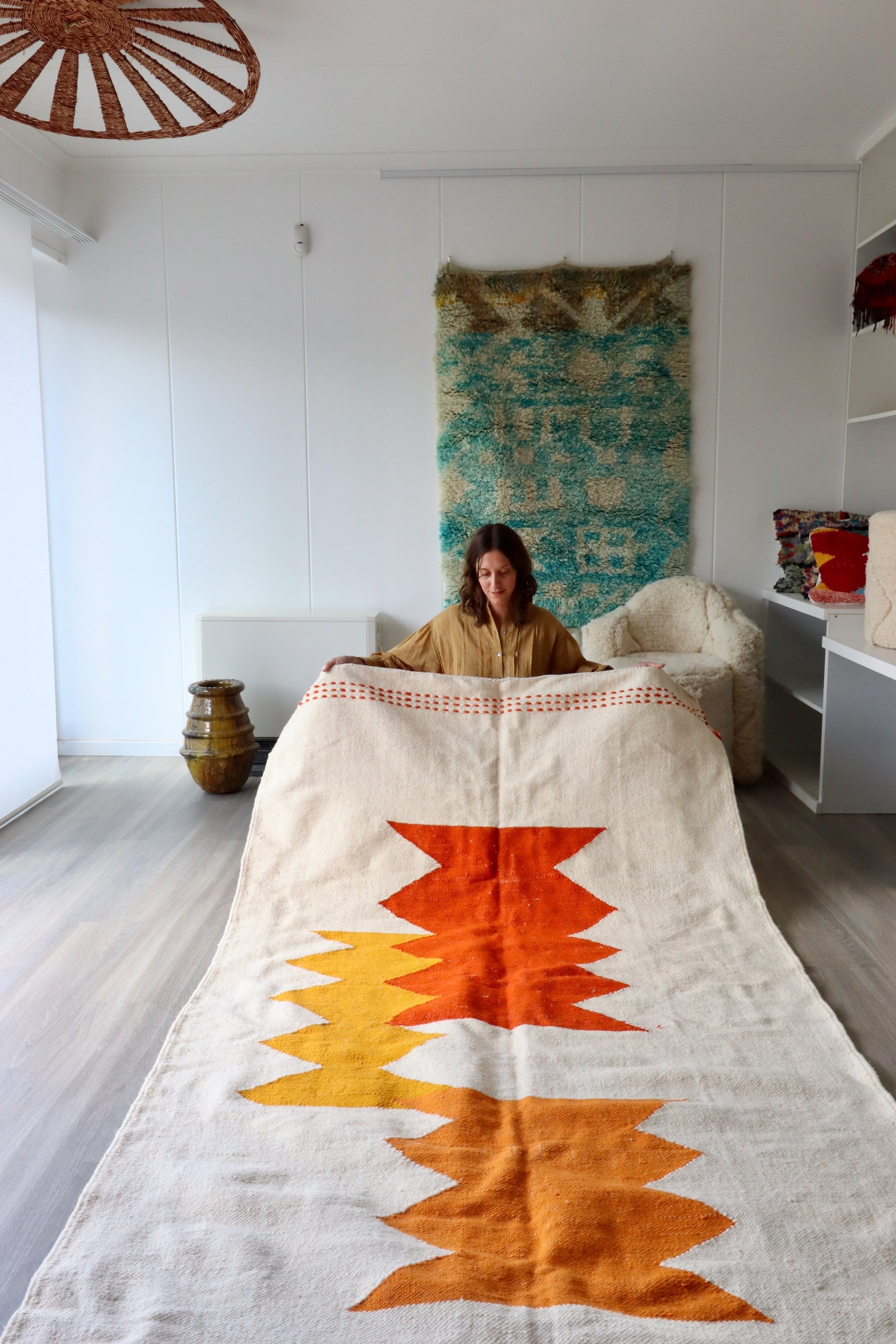 At Tree of Colors, you will find authentic treasures from Morocco that will bring an effortless boho style and brightness to your home : Berber rugs, Kilim cushions, wool poufs, Haïk & Handira throws and hand-painted ceramics. All our products are handmade in different regions of Morocco from Fès to Tazenakt.