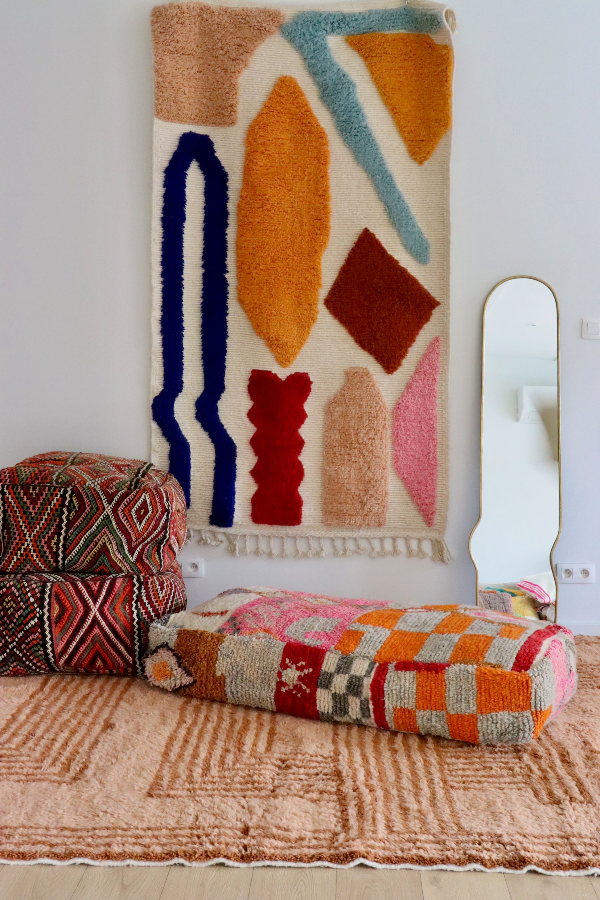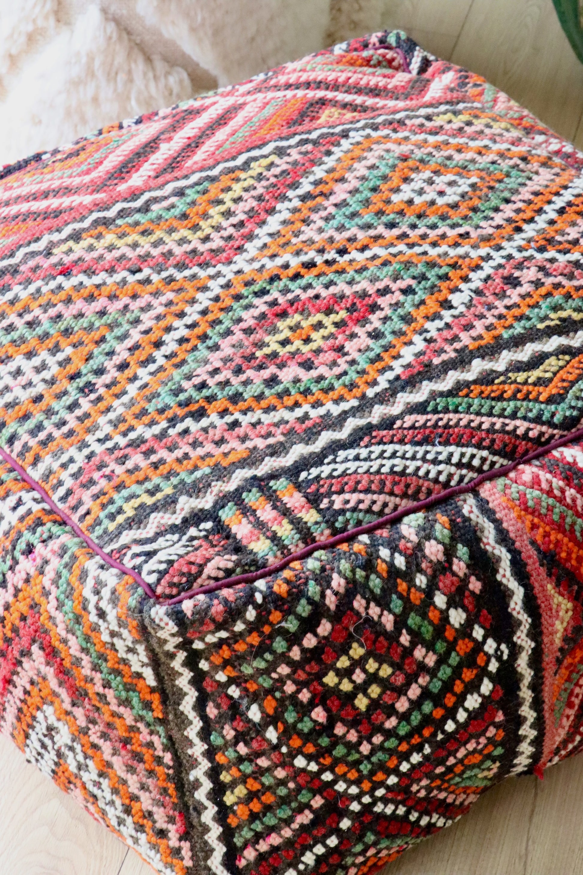 There are 4 poufs available, all handmade from the same kilim rug.