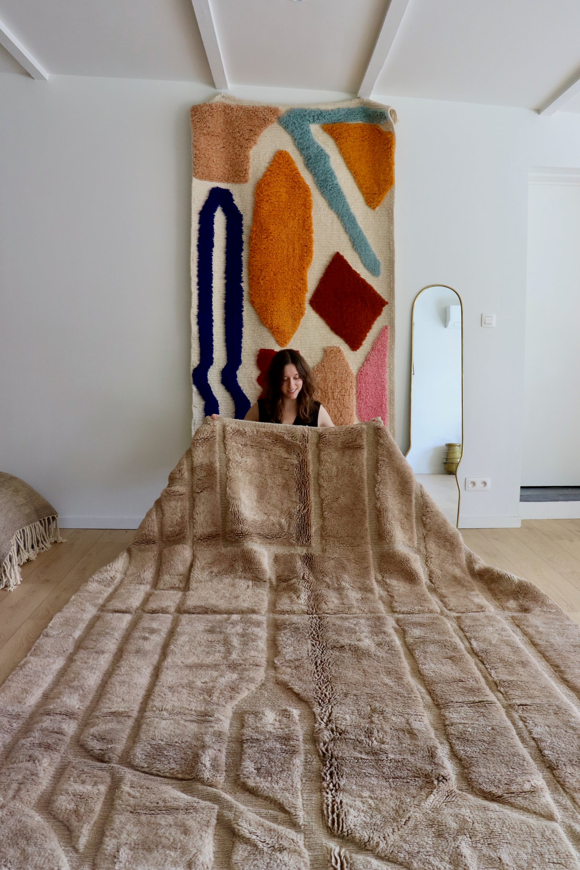 Handmade by Berber weavers in Khenifra, Morocco, this Mrirt rug is an exceptional piece, made with sheep wool. With its asymmetric patterns, very soft texture and medium-pile countless knots, this rug will bring a chic and authentic look to your interior.