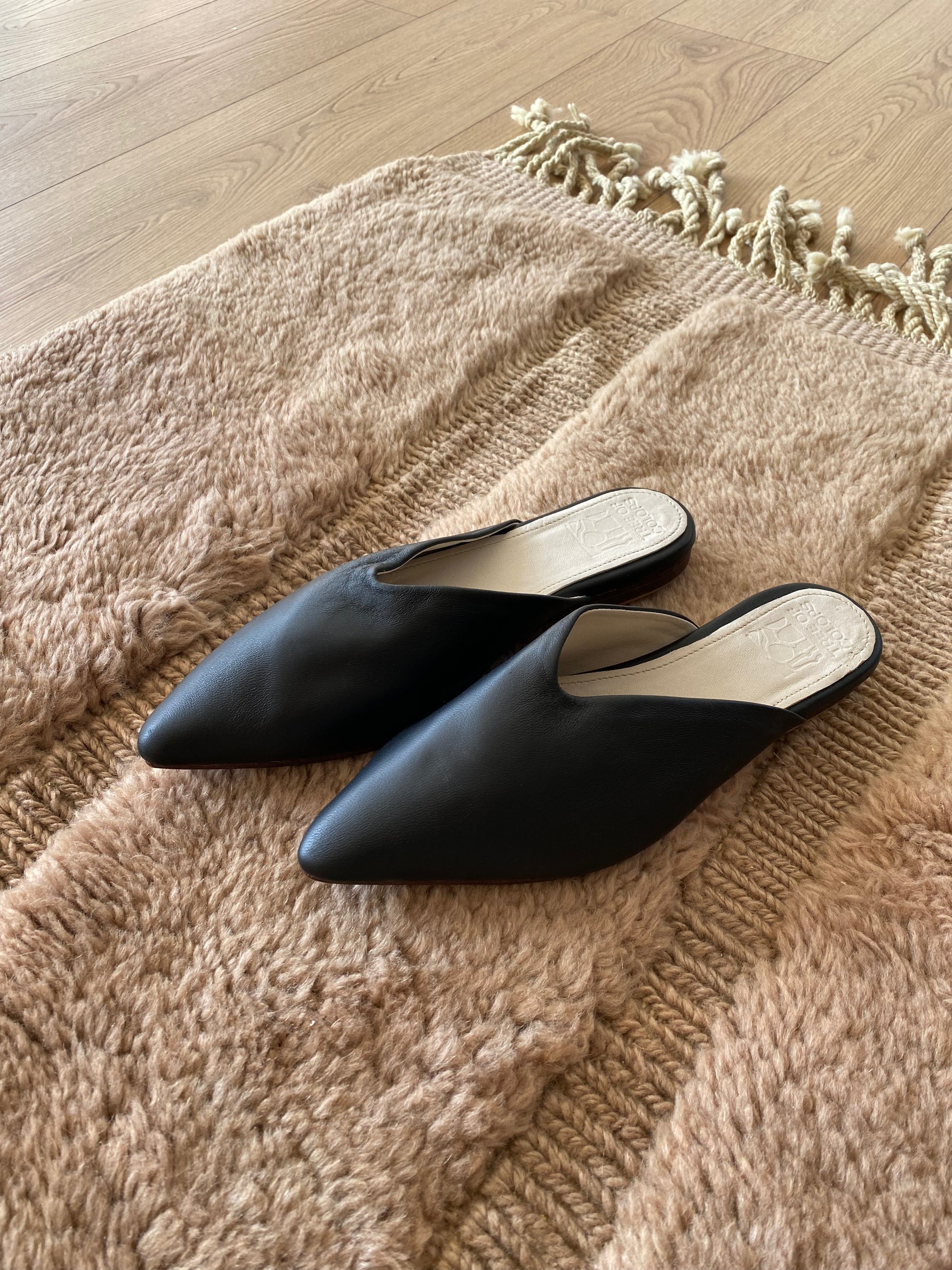 Ces mules babouches sont mon propre design et ont été faites main à Marrakech. Celles-ci sont en cuir avec un talon en bois de 2cm.