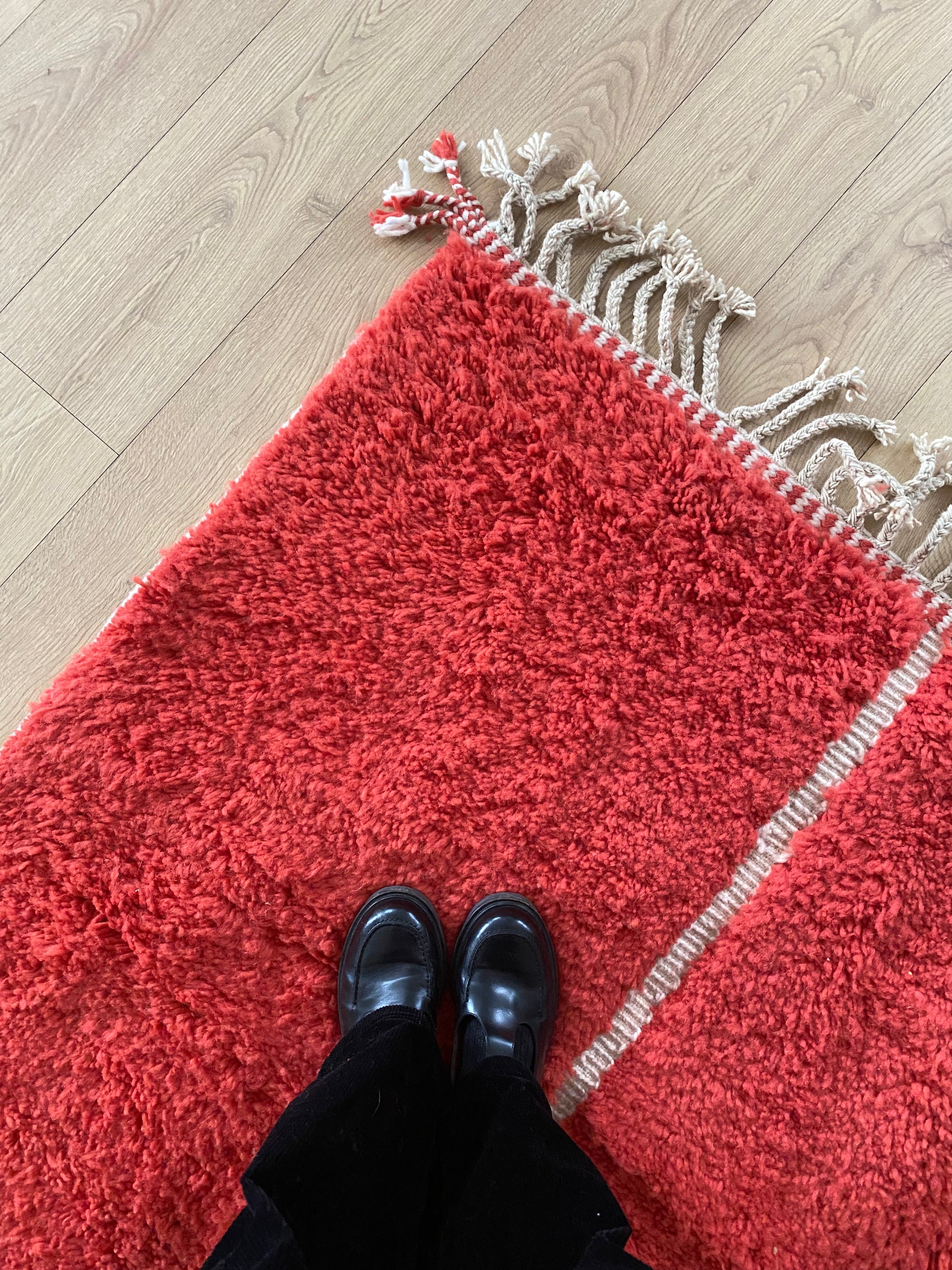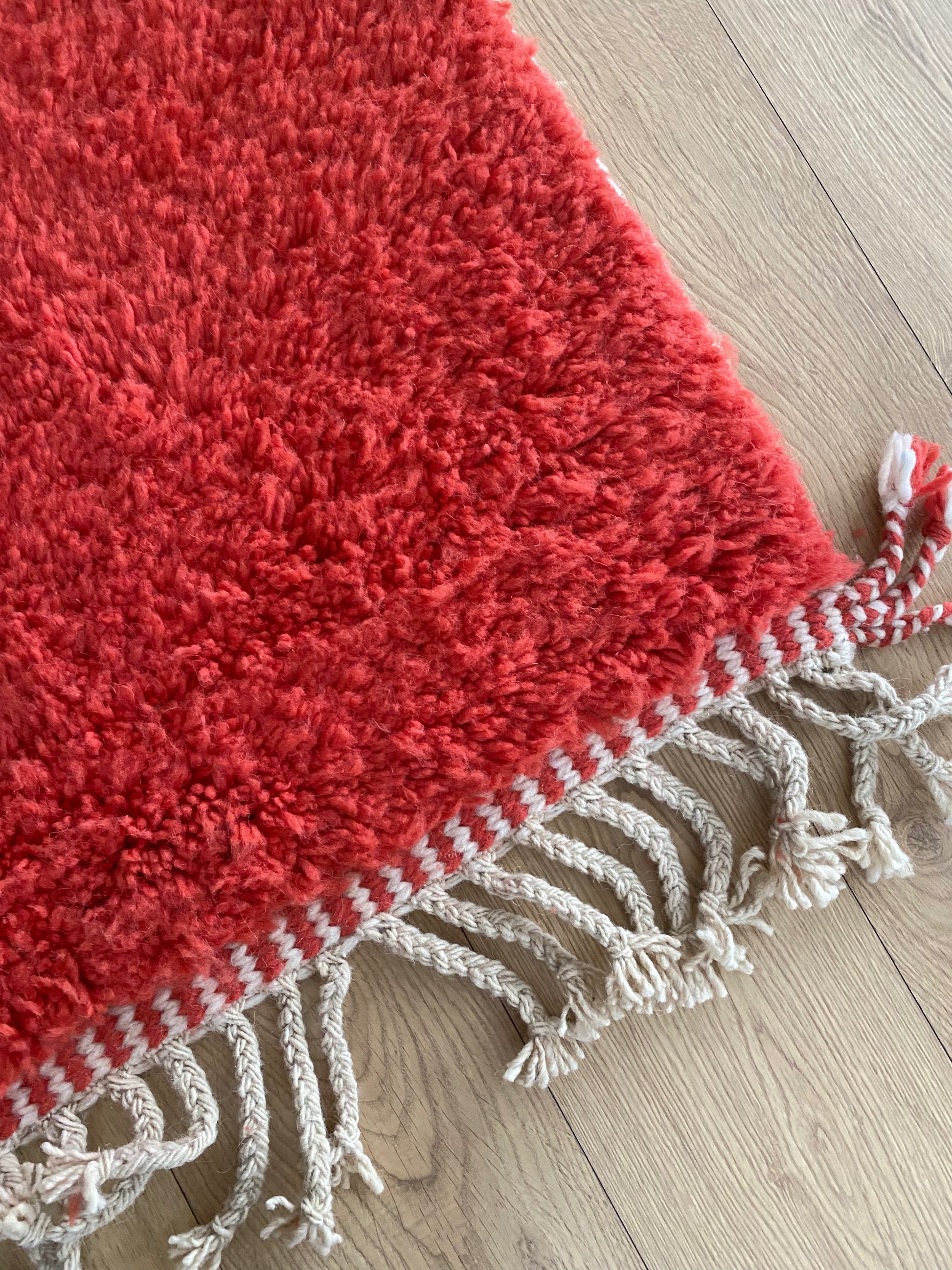 Tissé à la main avec de la laine naturelle à Khemisset, ce tapis Beni Ouarain est la pièce unique qui apportera de la couleur, de la chaleur et du peps à votre intérieur.