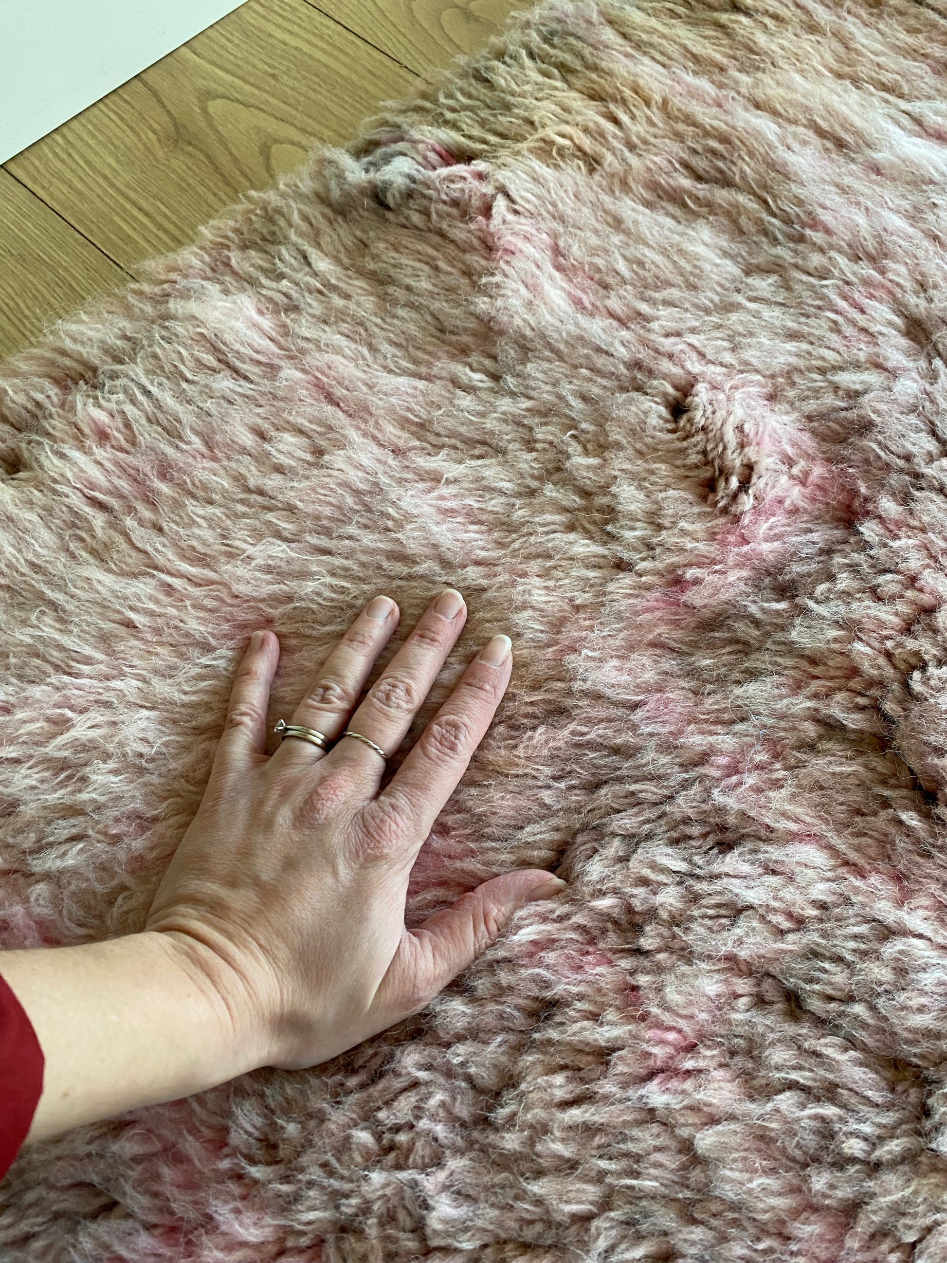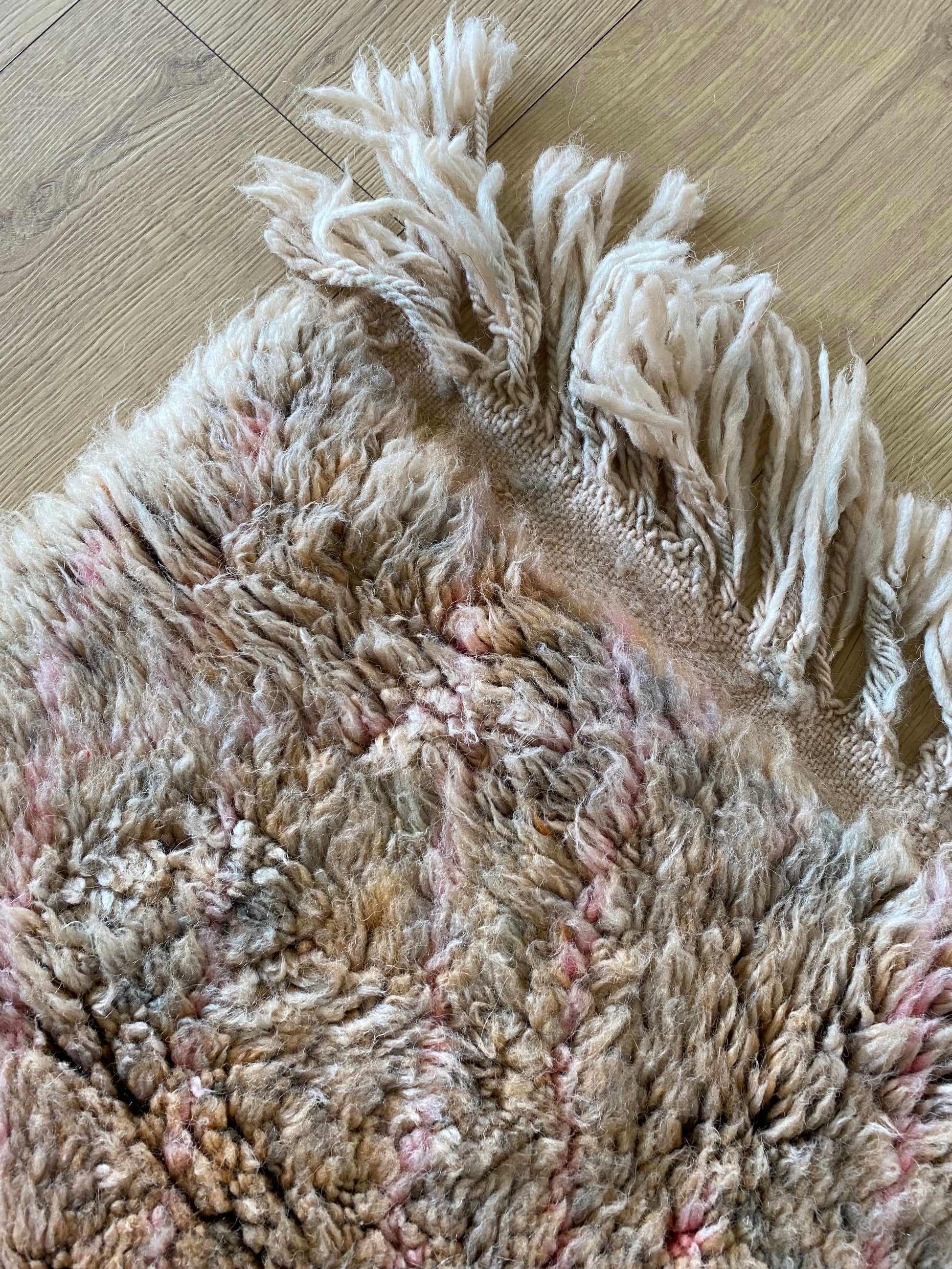 Ce tapis est tissé à la main en laine de mouton naturelle par des artisans berbères de la région du Moyen Atlas, au Maroc. Les tapis Beni Ouarain sont réputés pour leur laine douce et leurs motifs graphiques intemporels. Chaque tapis est une pièce unique, confectionnée avec soin pour durer.