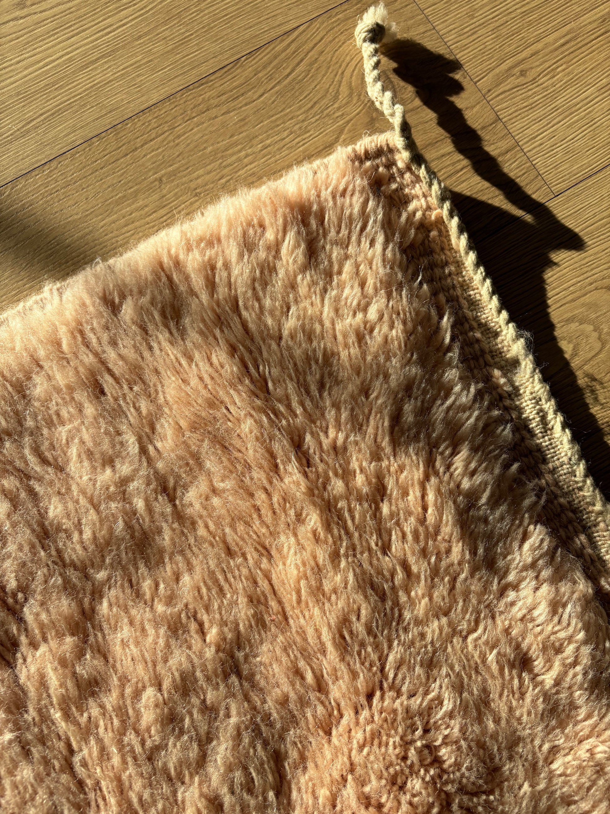 Ce tapis est tissé à la main en laine naturelle de haute qualité par des artisans berbères de Khénifra, au Maroc. Chaque tapis est unique.