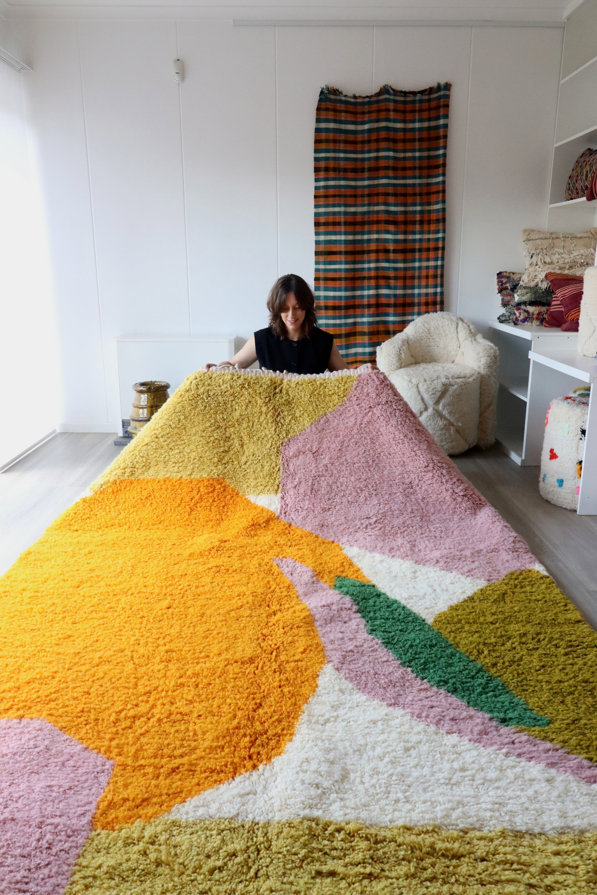At Tree of Colors, you will find authentic treasures from Morocco that will bring an effortless boho style and brightness to your home : Berber rugs, Kilim cushions, wool poufs, Haïk & Handira throws and hand-painted ceramics. All our products are handmade in different regions of Morocco from Fès to Tazenakt.