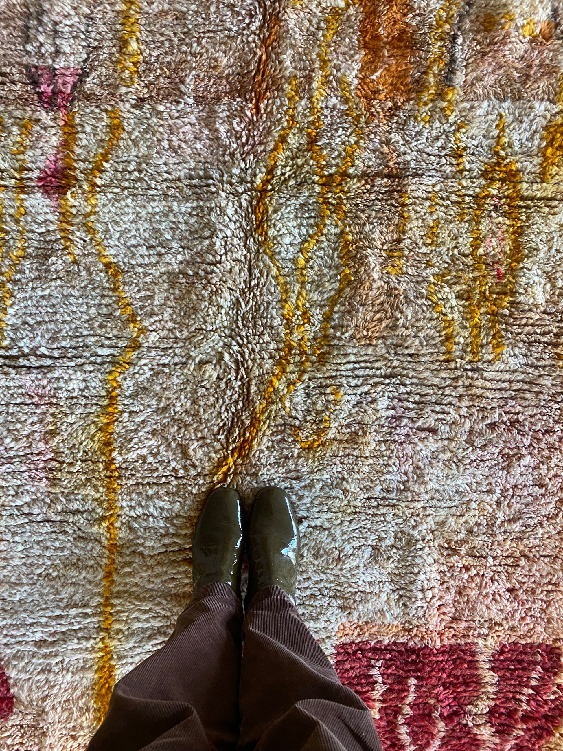Tissé à la main à Boujaad au Maroc, ce tapis Boujaad est une pièce unique, réalisée en laine naturelle.