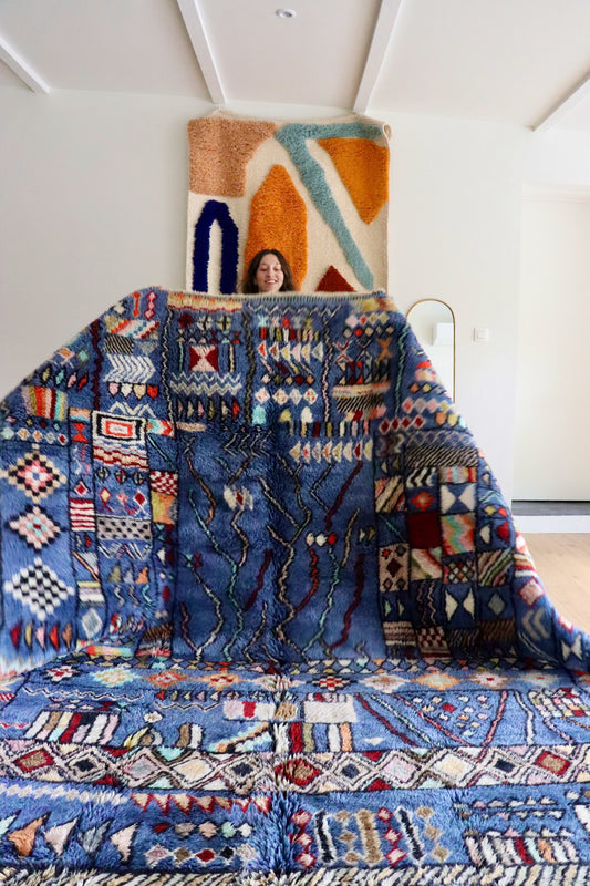 Beni Ouarain Marokkaans kleurrijk vloerkleed (966) 295x205cm - Blue Swimming Pool