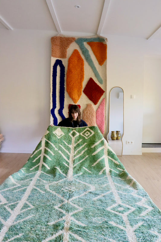 Beni Ouarain Marokkaans kleurrijk tapijt (1020) 300x200cm - Chartreuse