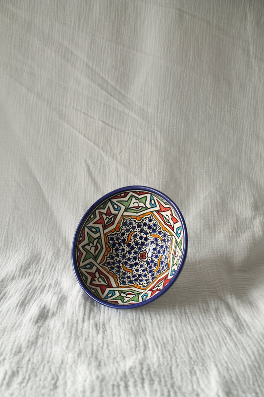 Kleine keramische kom, met de hand beschilderd keramiek in Fes, Marokko