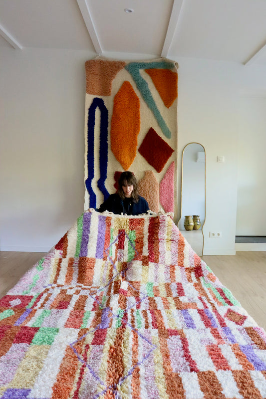 Beni Ouarain Marokkaans kleurrijk tapijt (1023) 297x206cm - Checkmate