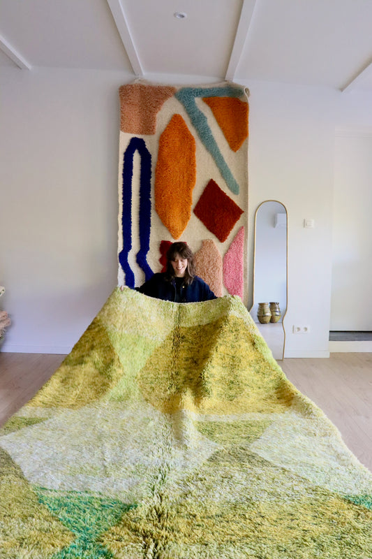 Beni Ouarain Marokkaans kleurrijk tapijt (1020) 300x200cm - Chartreuse