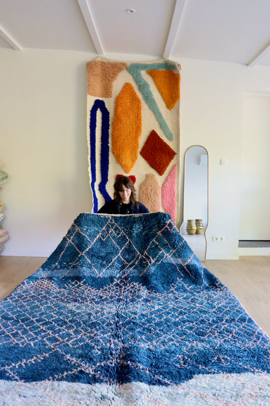 Beni Ouarain Marokkaans kleurrijk tapijt (1016) 270x187cm - Blueberry
