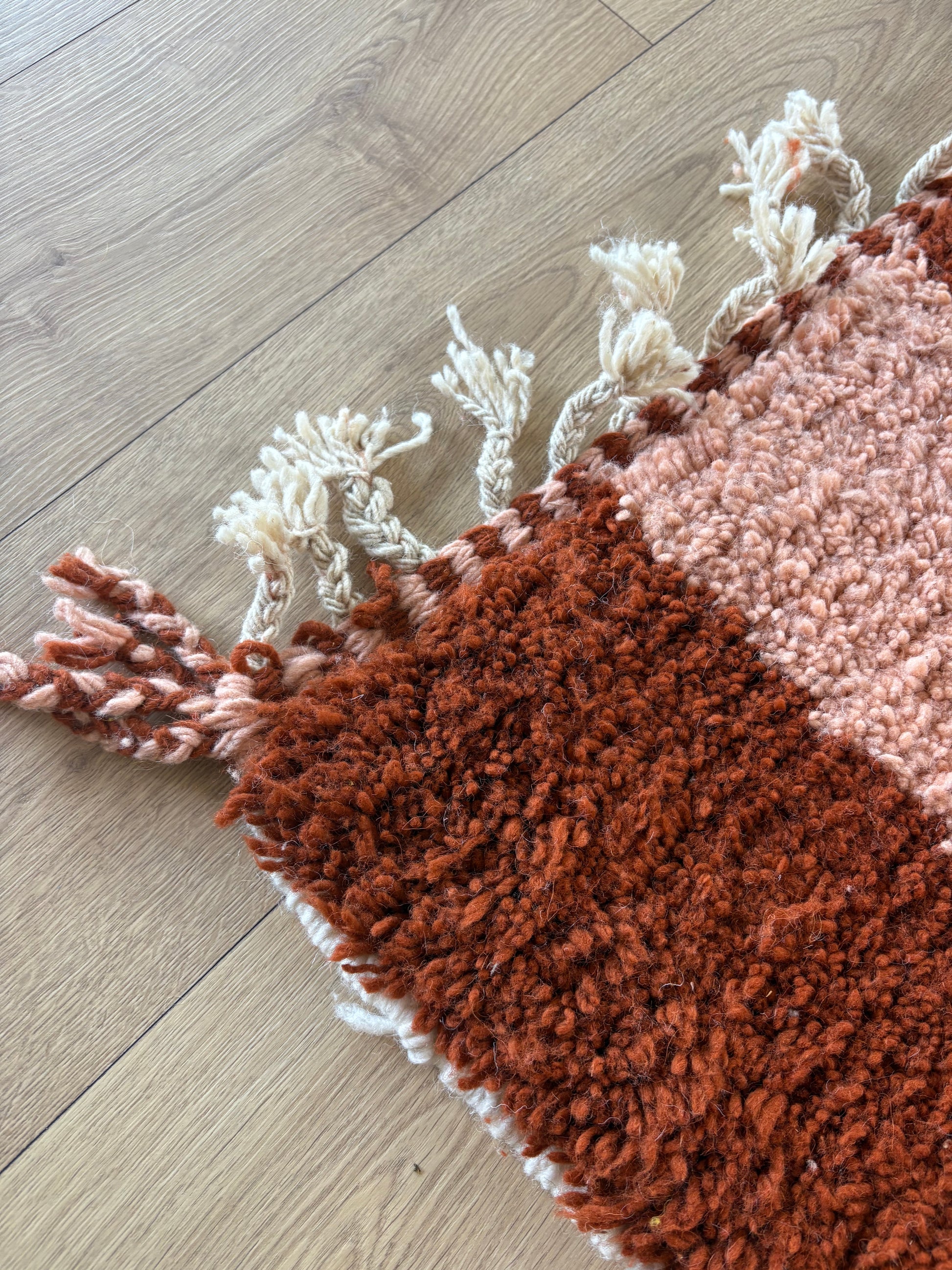 Handgemaakt door Berberwevers in Khemisset, Marokko, is dit tapijt een echt uniek stuk, gemaakt van wol. Met zijn kleurrijke patronen zal dit tapijt een heldere en authentieke look aan uw interieur geven.