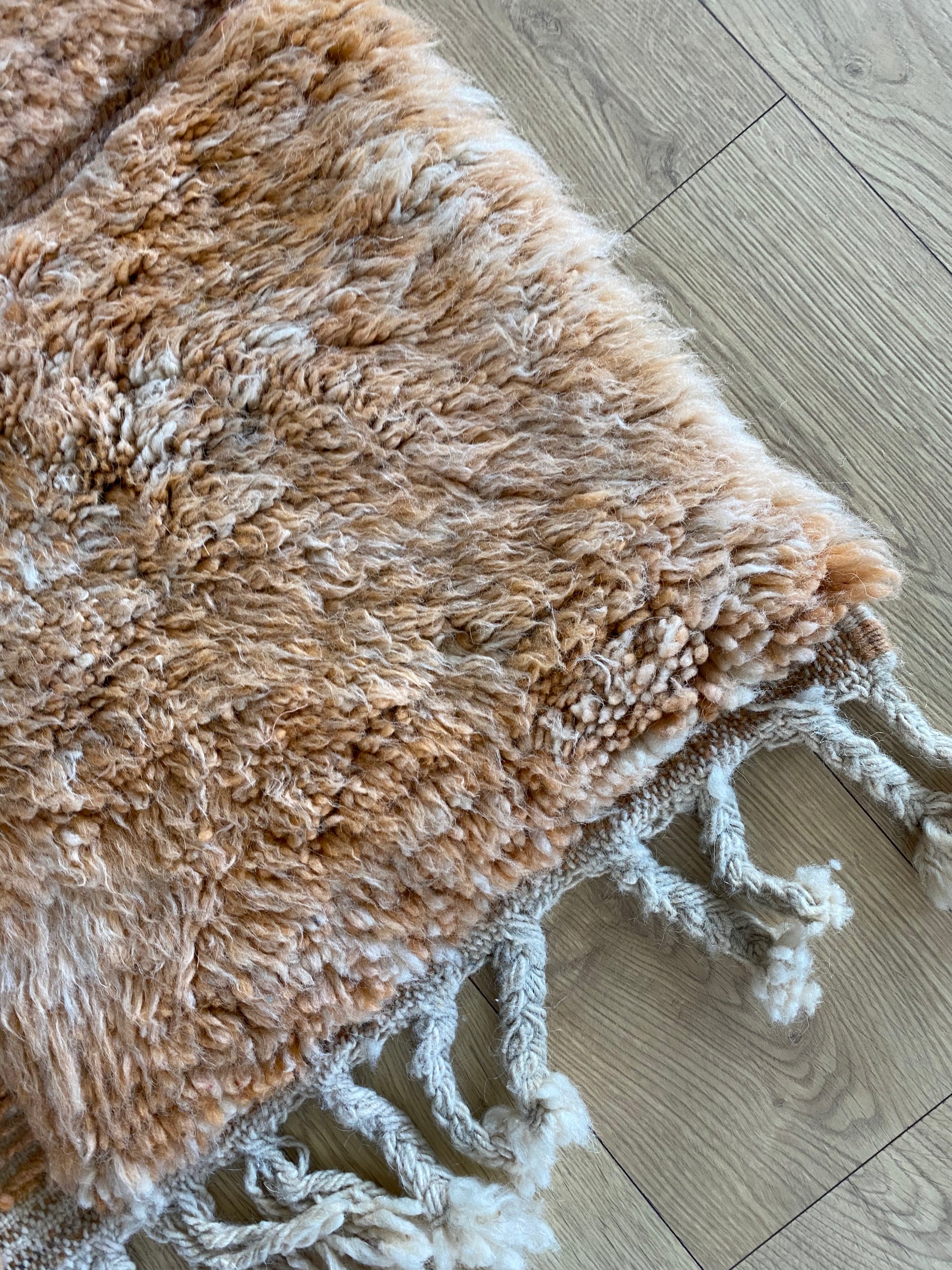 Handwoven from natural wool in Khemisset, this Beni Ouarain rug is a unique piece that will bring color, warmth, and vibrancy to your home.
