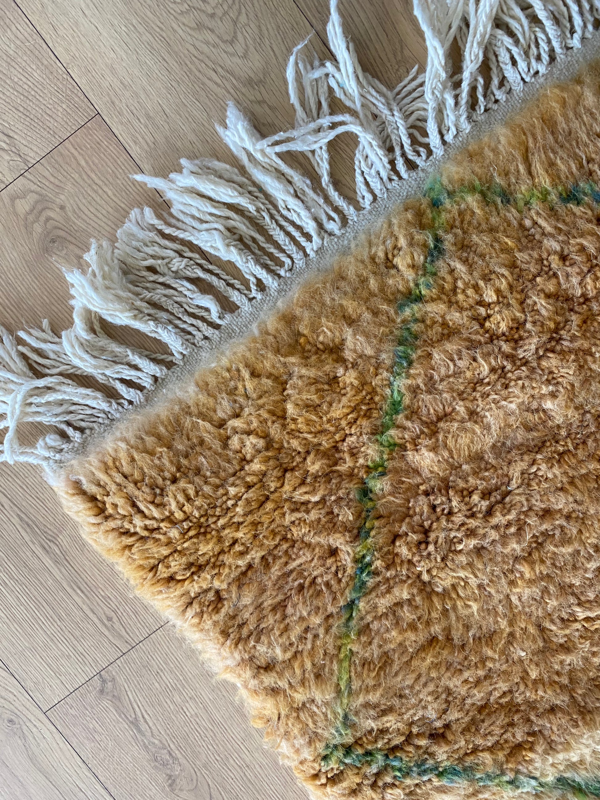 Handwoven from natural wool in Khemisset, this Beni Ouarain rug is a unique piece that will bring color, warmth, and vibrancy to your home.