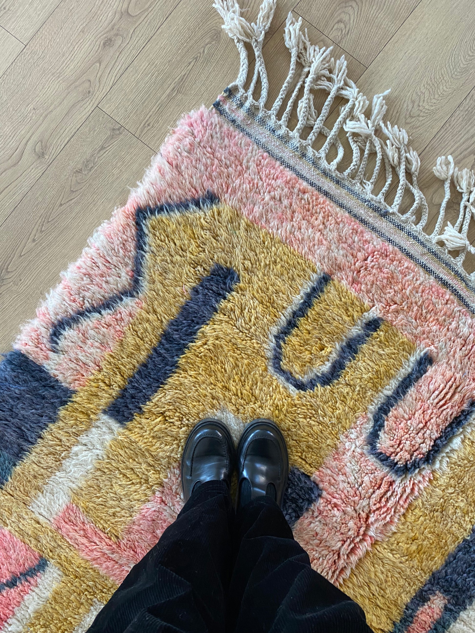 Handwoven from natural wool in Khemisset, this Beni Ouarain rug is a unique piece that will bring color and vibrancy to your home.