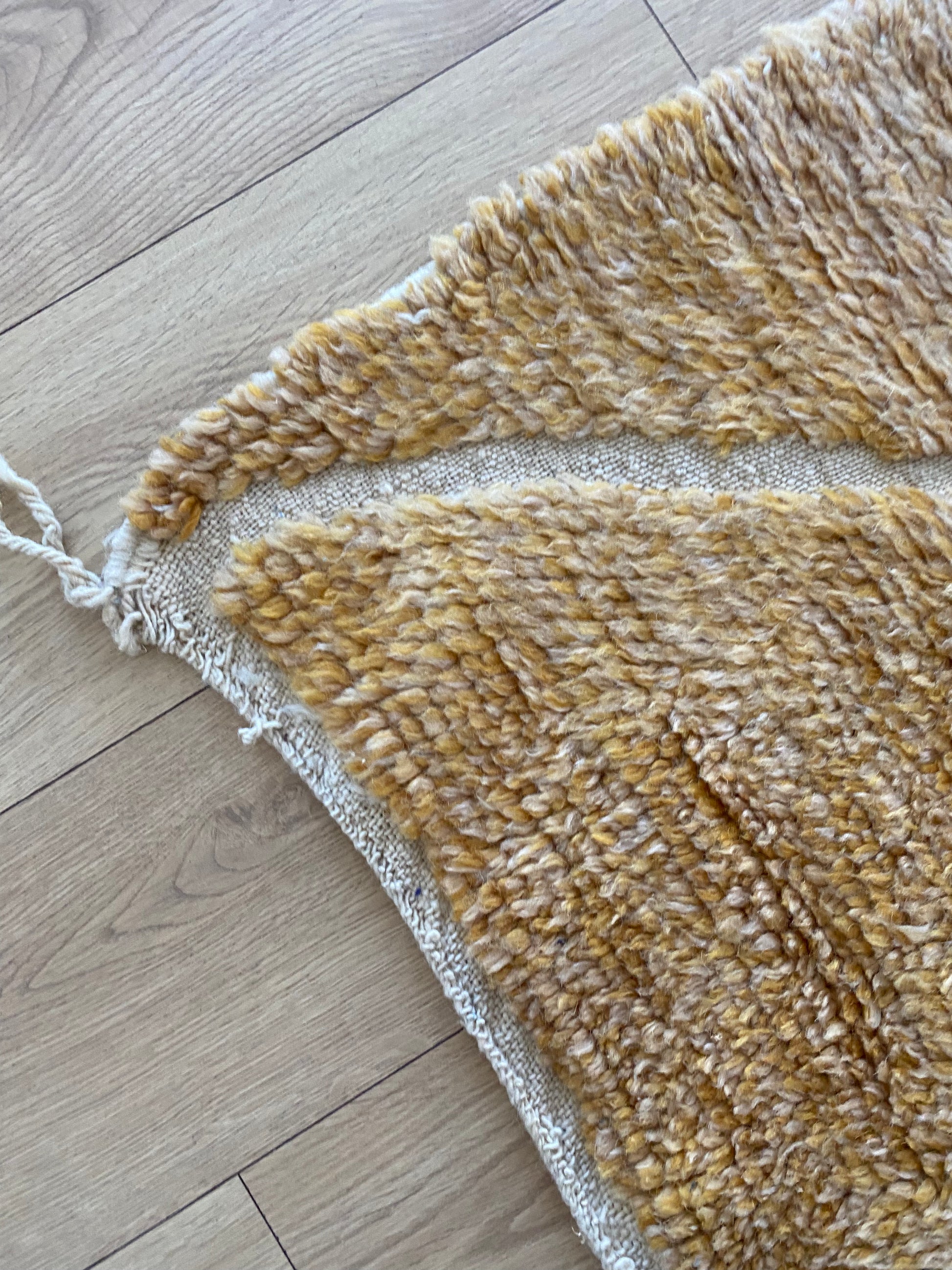 Handwoven from natural wool in Khemisset, this Beni Ouarain rug is a unique piece that will bring color and vibrancy to your home.