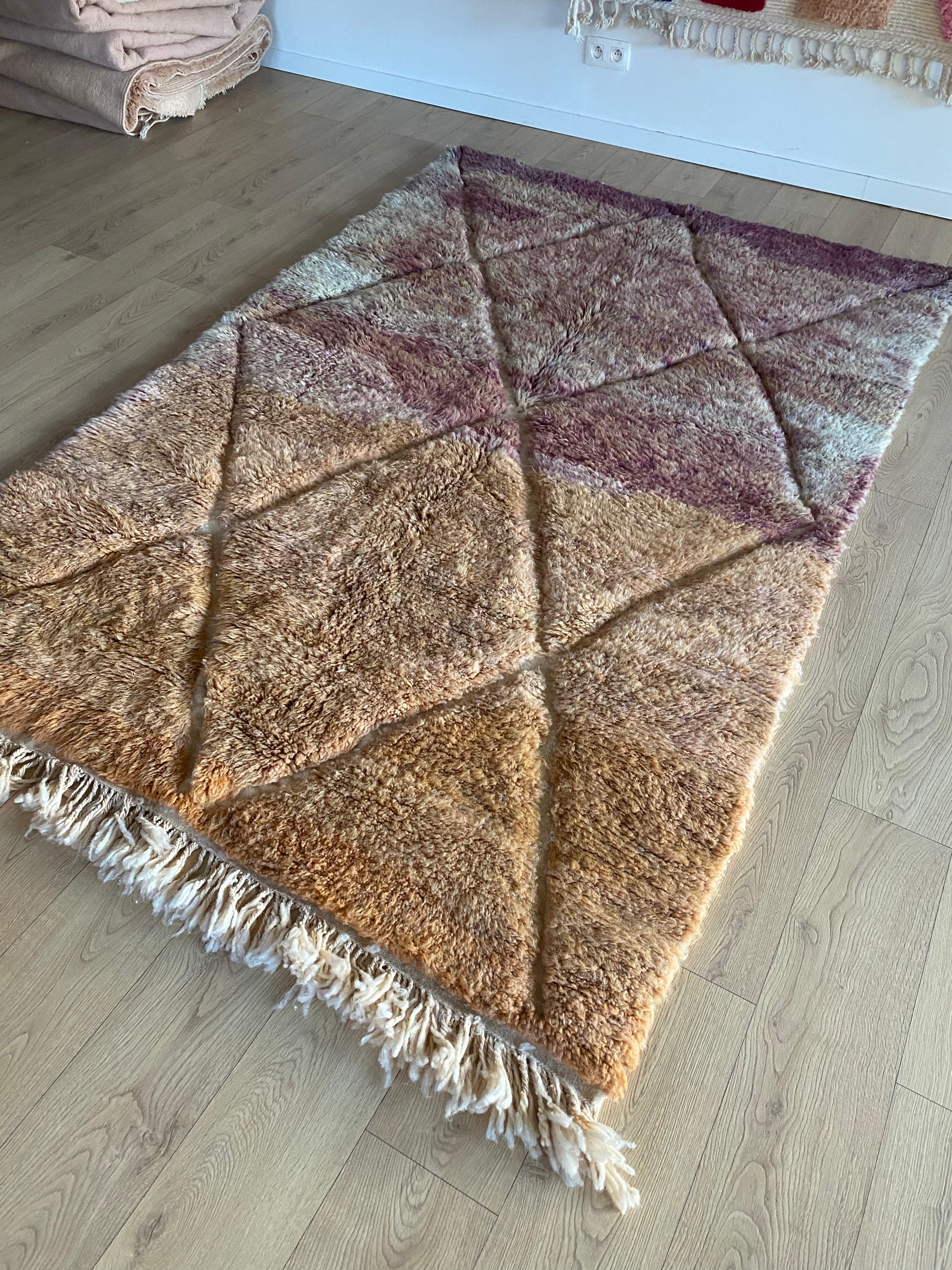 Handwoven from natural wool in Khemisset, this Beni Ouarain rug is a unique piece that will bring color and vibrancy to your home.
