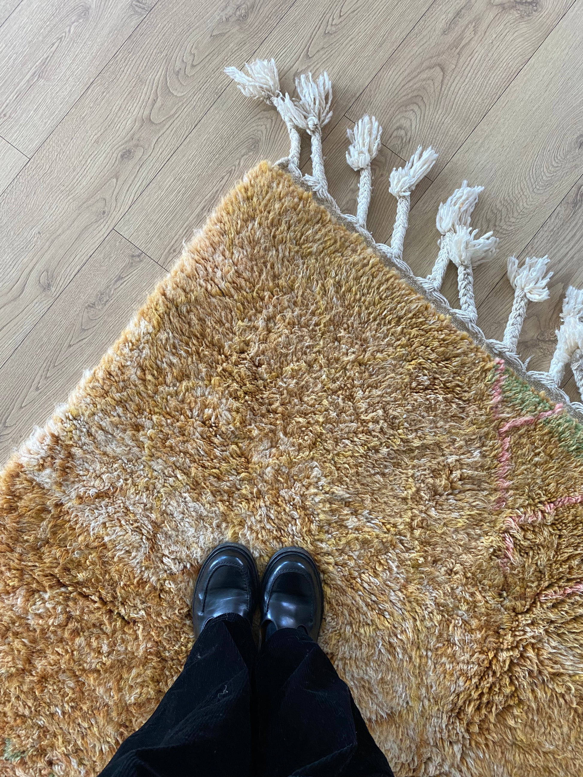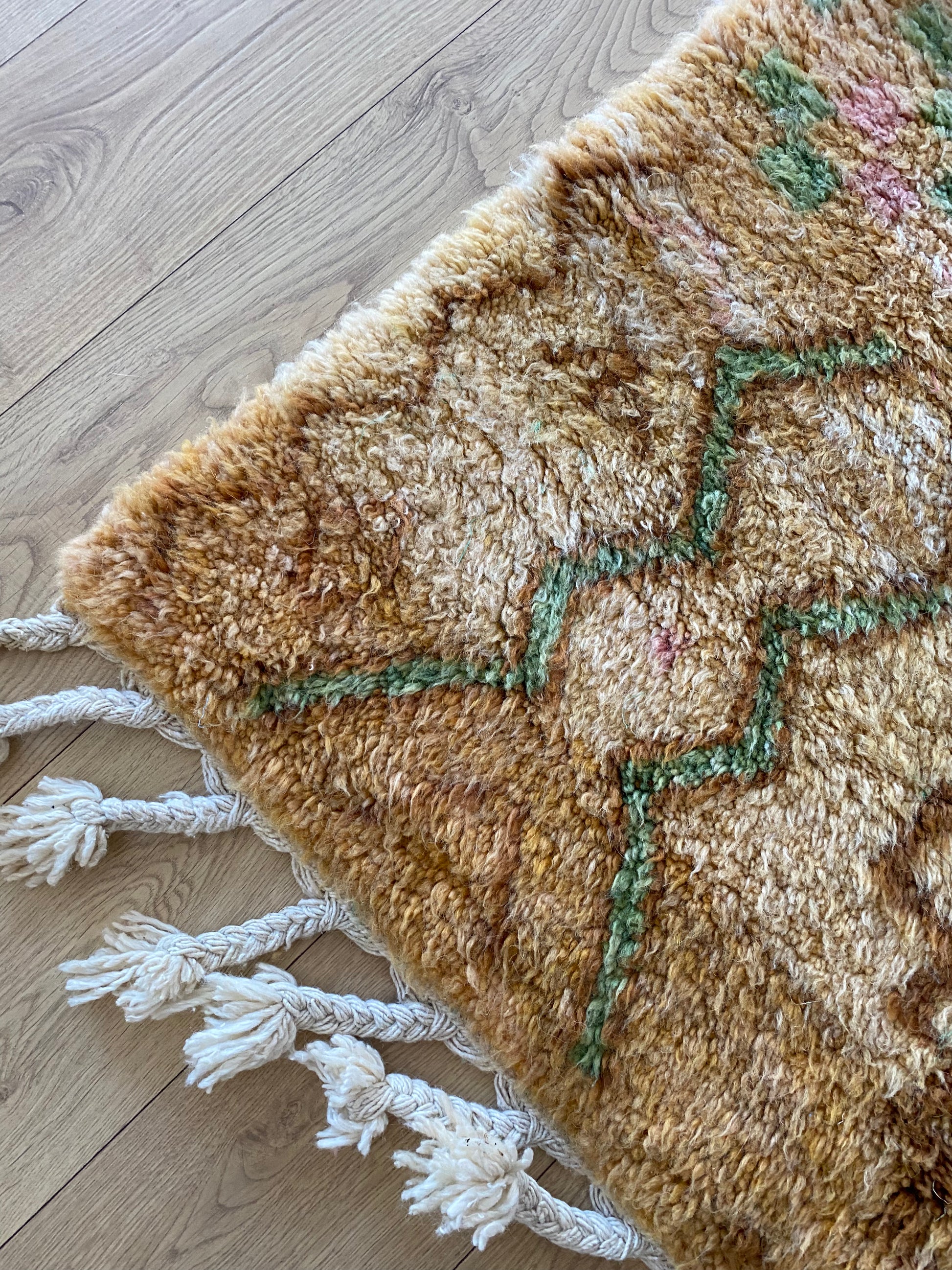 Handwoven from natural wool in Khemisset, this Beni Ouarain rug is a unique piece that will bring color and vibrancy to your home.