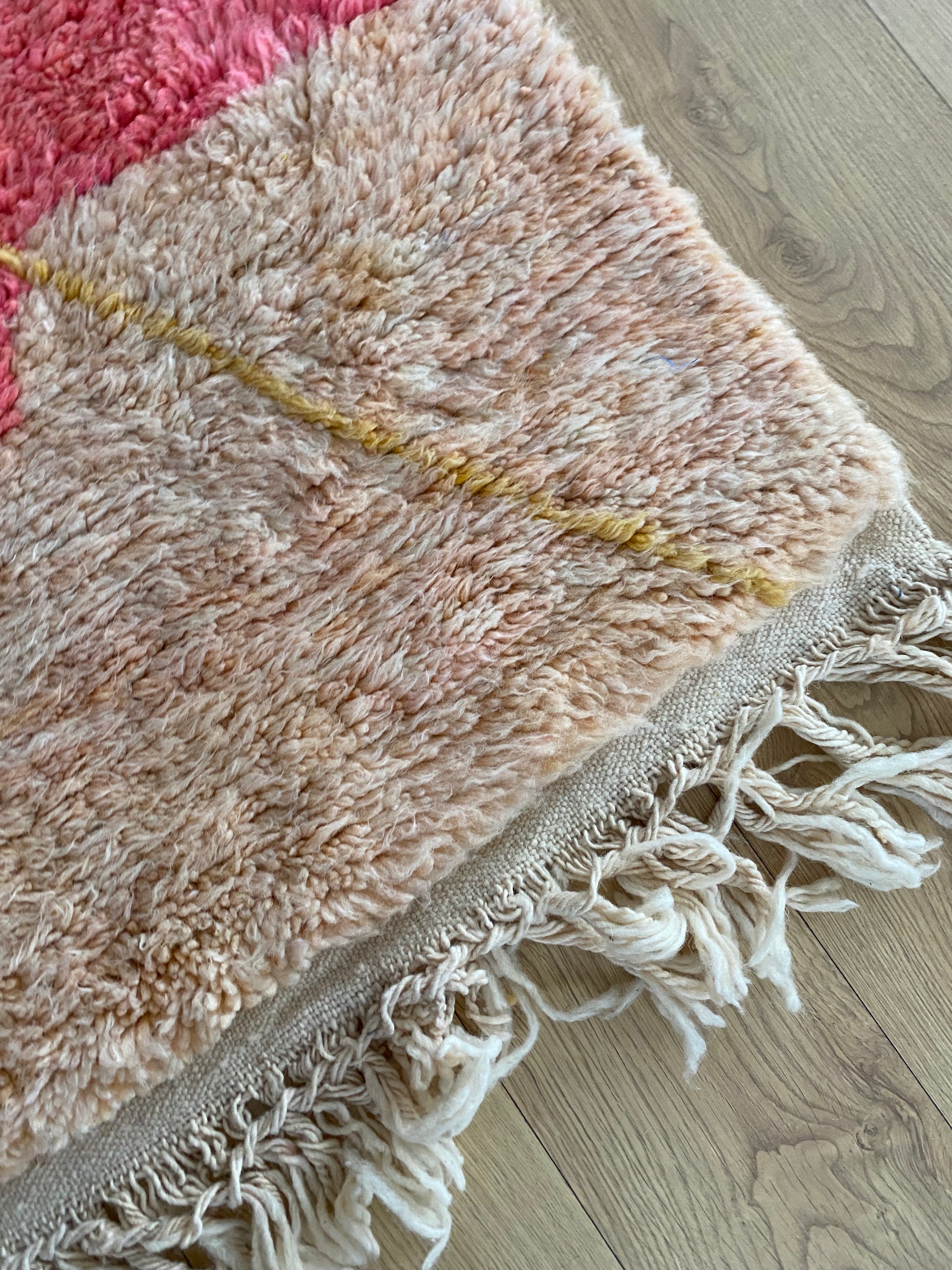 Handwoven from natural wool in Khemisset, this Beni Ouarain rug is a unique piece that will bring color and vibrancy to your home.