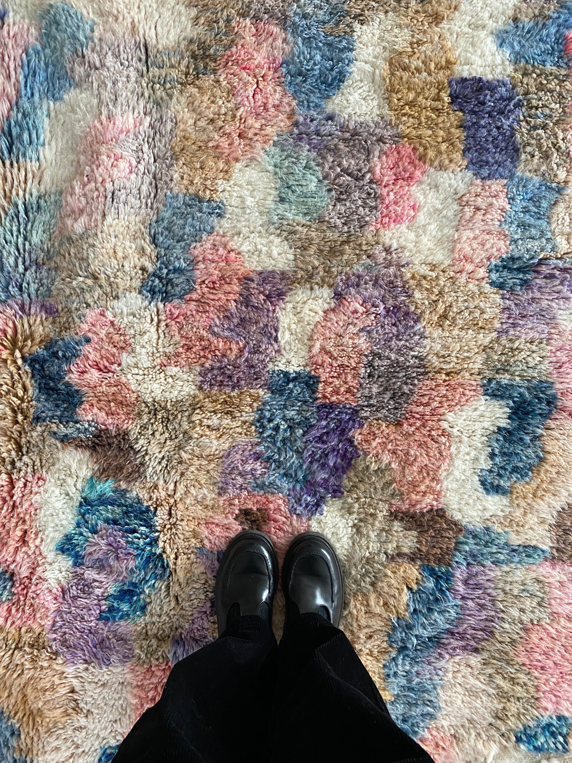 Handwoven from natural wool in Khemisset, this Beni Ouarain rug is a unique piece that will bring color and vibrancy to your home.