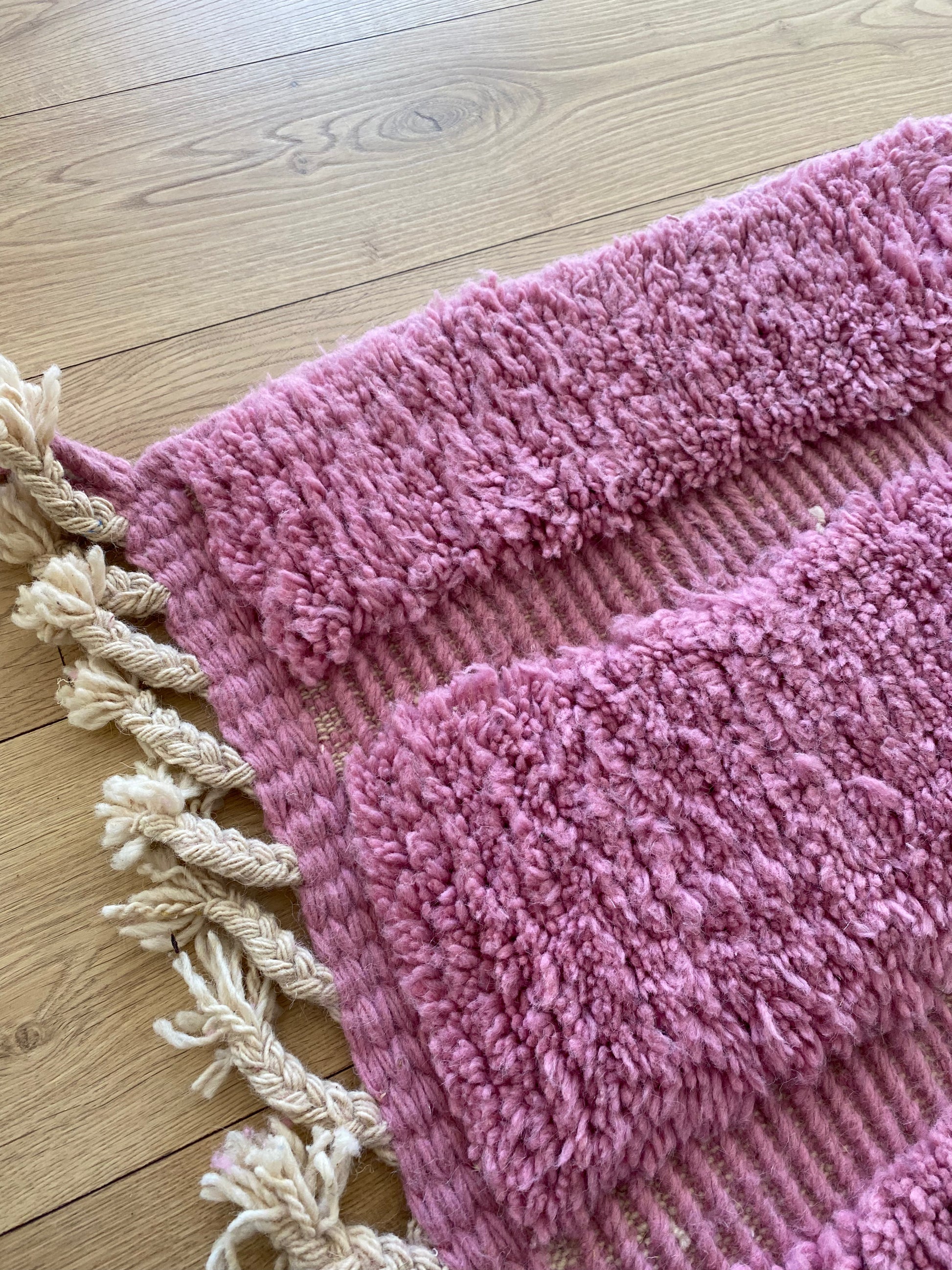 Handmade by Berber weavers in Khemisset, Morocco, this rug is a truly unique piece, made with wool. With its colorful patterns, this rug will bring a bright and authentic look to your interior.