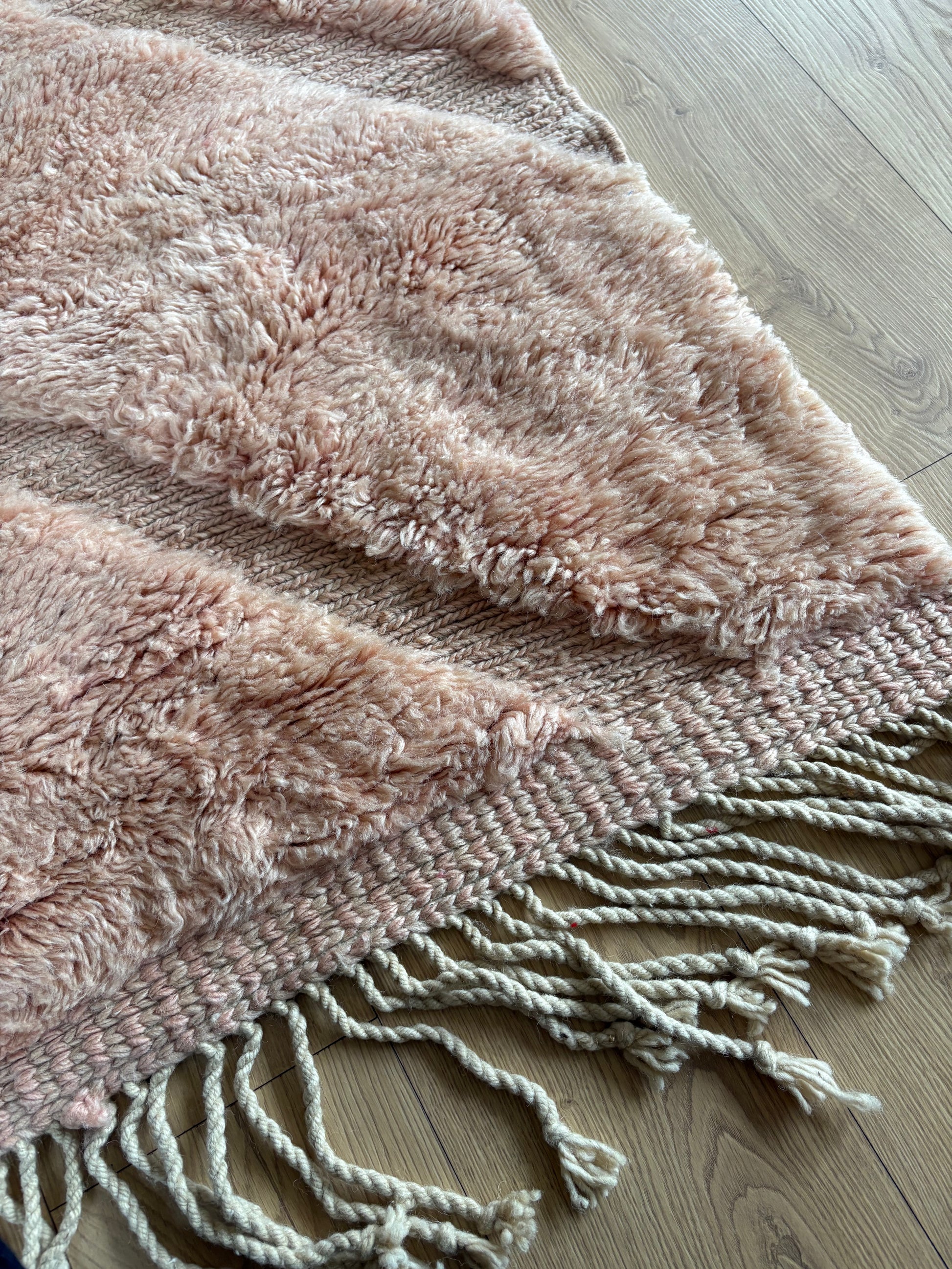 This rug is handwoven from high-quality natural wool, by Berber artisans in Khénifra, Morocco. Each rug is unique.